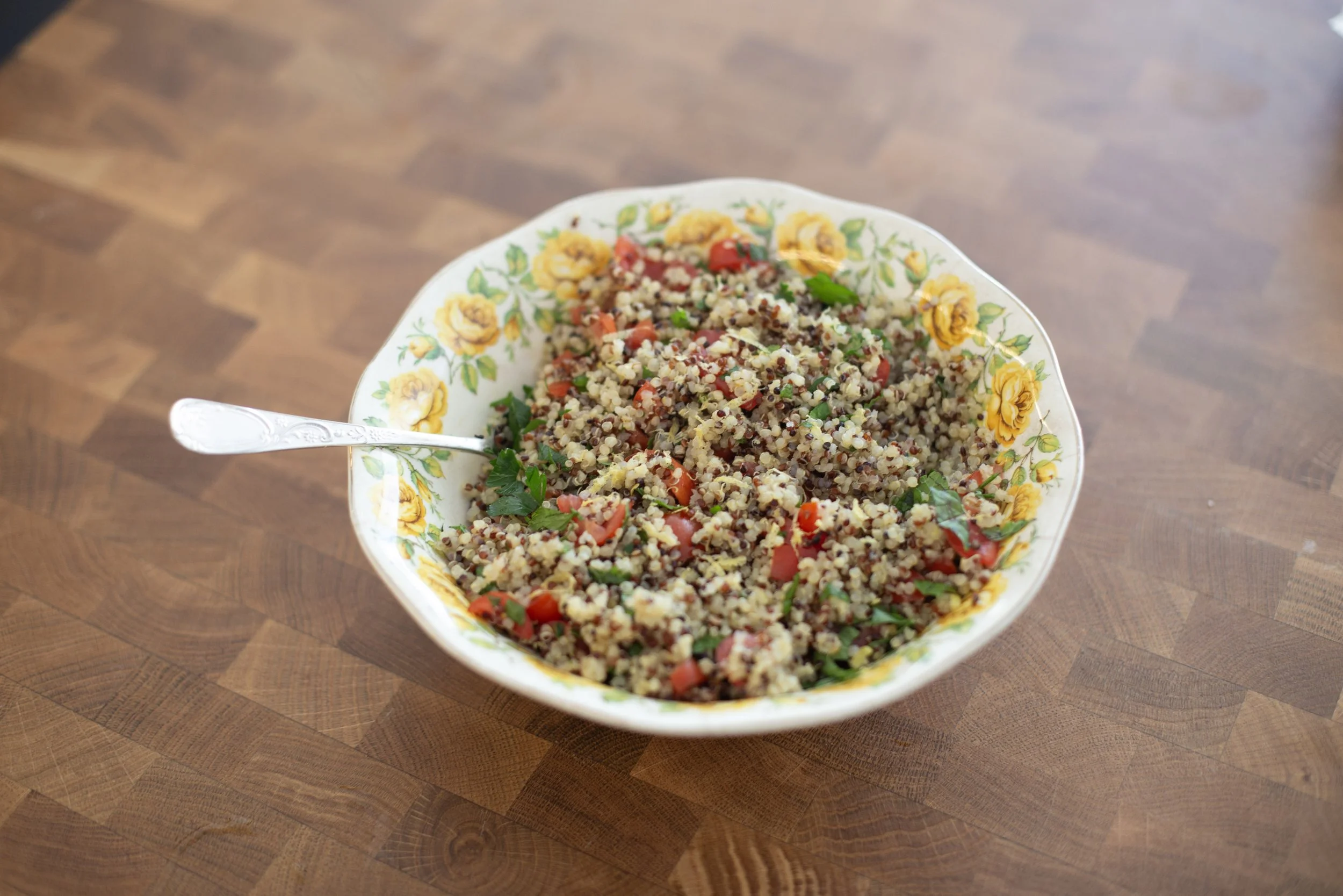 Light, fluffy quinoa is lifted with fresh lemon, olive oil and herbs, creating something that feels bright and grounding at the same time. It is the kind of thing you can keep in the fridge and build meals around, adding whatever protein or vegetables you have on hand.